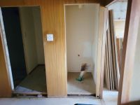古い水廻り設備や建具を撤去していきます。